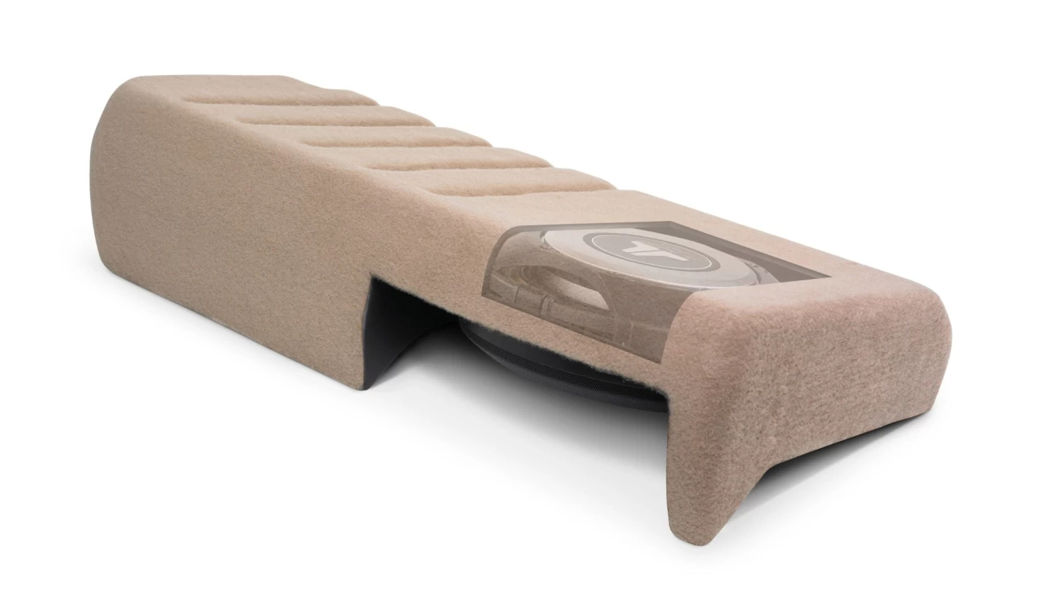 The Hard Data: Contains one 13TW5v2-2 subwoofer in a sealed enclosure. 600 watt power handling. Wired for 2 ohm mono. Installs under driver side of rear bench seat. Does not affect folding or reclining of seat. Installation requires removal of under-seat storage tray (if equipped). Will not fit ’09-Up F-150 SuperCab models!