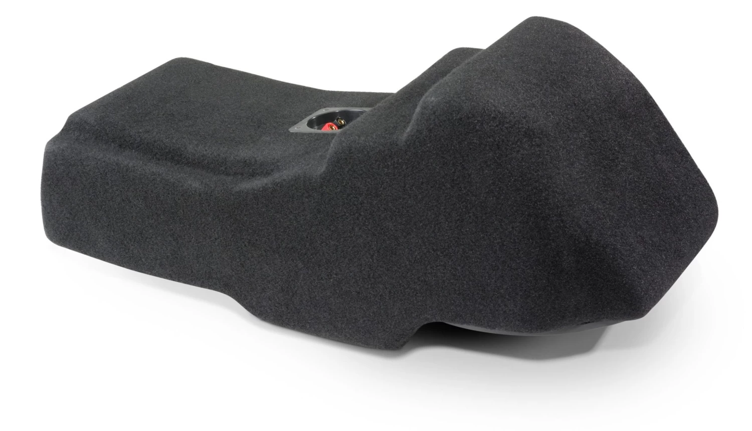 This compact unit installs inside of the factory center console for a completely stock appearance and delivers intense bass output and quality from a down-firing 10-inch subwoofer. Full console functionality and storage space is retained.