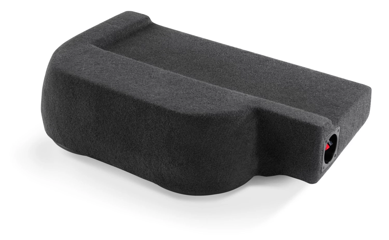 The Stealthbox® installs neatly under the rear seat, leaving plenty of room next to it for amplifier mounting and installation.