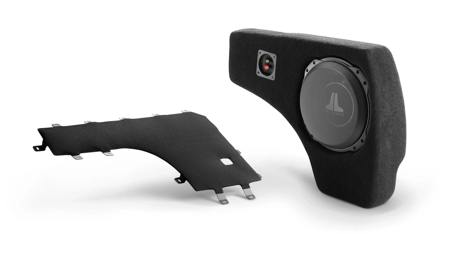 The Hard Data: Contains one 10TW3-D4 subwoofer in a sealed enclosure. 400 watt power handling. Wired for 2 ohm mono. Installs behind factory panel in the passenger side rear cargo area. Subwoofer is protected by the included black steel mesh grille and concealed by a fabric grille. Installation requires permanent modification to the factory panel. Installation in models equipped with an “OEM” subwoofer require purchase of a standard factory panel from Toyota Parts. Will not fit models with third row seating.