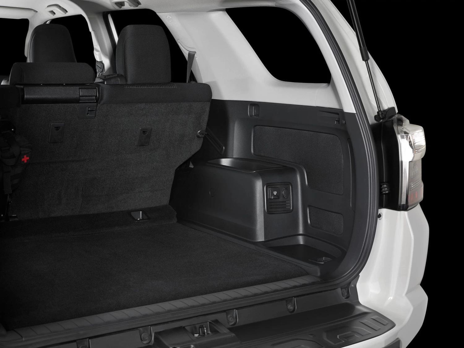The 5th Generation 4Runner has been long-overdue for a Stealthbox® solution. When we finally approached the challenge, we knew owners cared about the vehicle’s cargo space and we didn’t want to interfere with OEM cargo slides or aftermarket cargo drawer systems. The result is the addition of a spectacular 400 watt, 10-inch subwoofer solution tucked nicely behind the factory cargo panel.