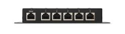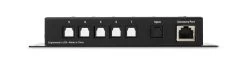 The secondary function of the VXi-HUB is to distribute synchronous optical digital audio signals to the networked amplifiers, avoiding the delays associated with handing digital signals off through a chain of amplifiers. The optical digital audio output of a source unit connects directly to the VXi-HUB’s Optical Audio Input, which then distributes synchronous digital audio to the amplifiers from its five Optical Outputs. VXi-HUB handles S/PDIF signals up to 24 bits/192 kHz.